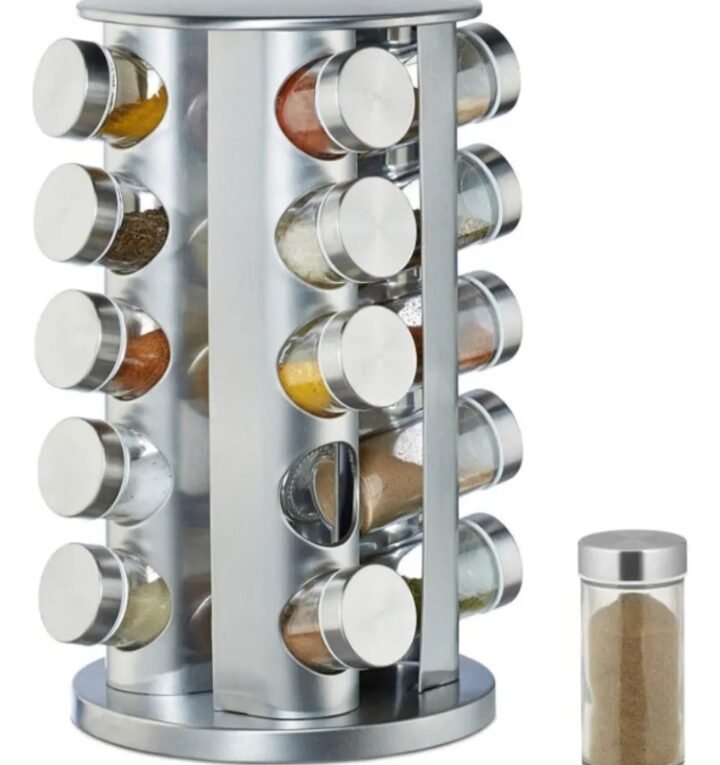 Porta Temperos 20 Potes com Suporte Giratório Redondo Inox