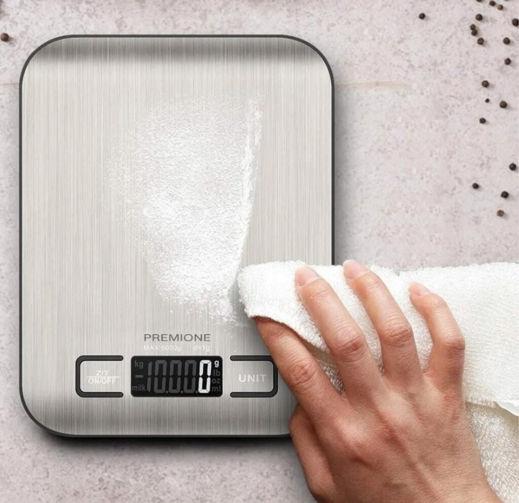 Balança Digital de Precisão até 10k com Função Tara, em Aço Inox Escovado Prateado Faça Receitas Sob Medida