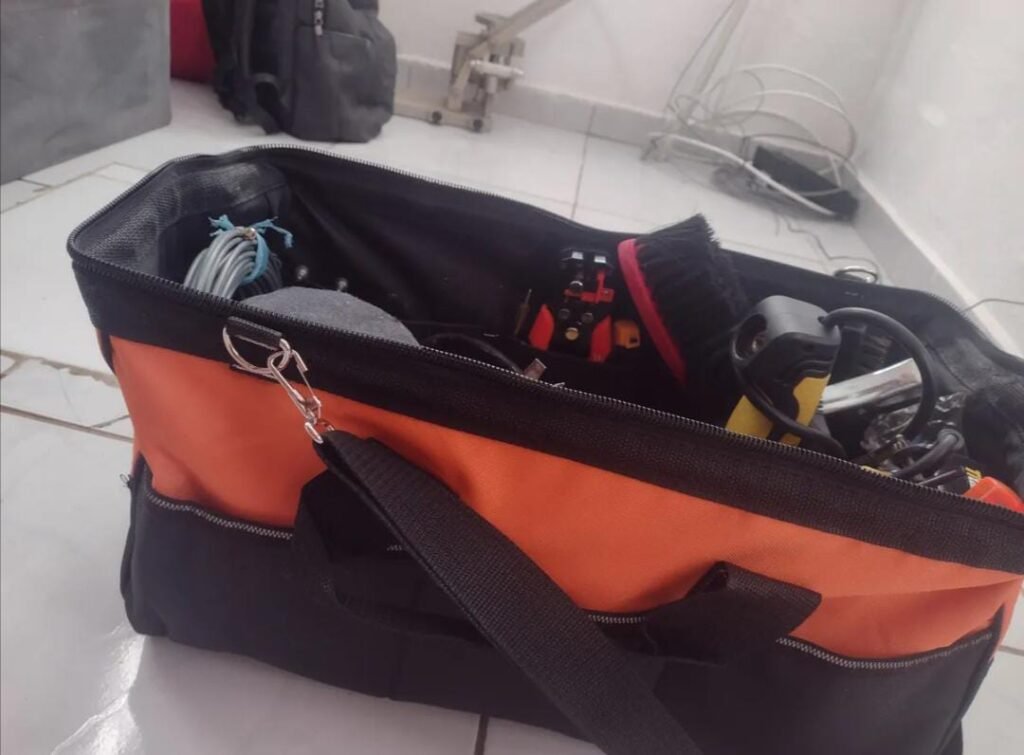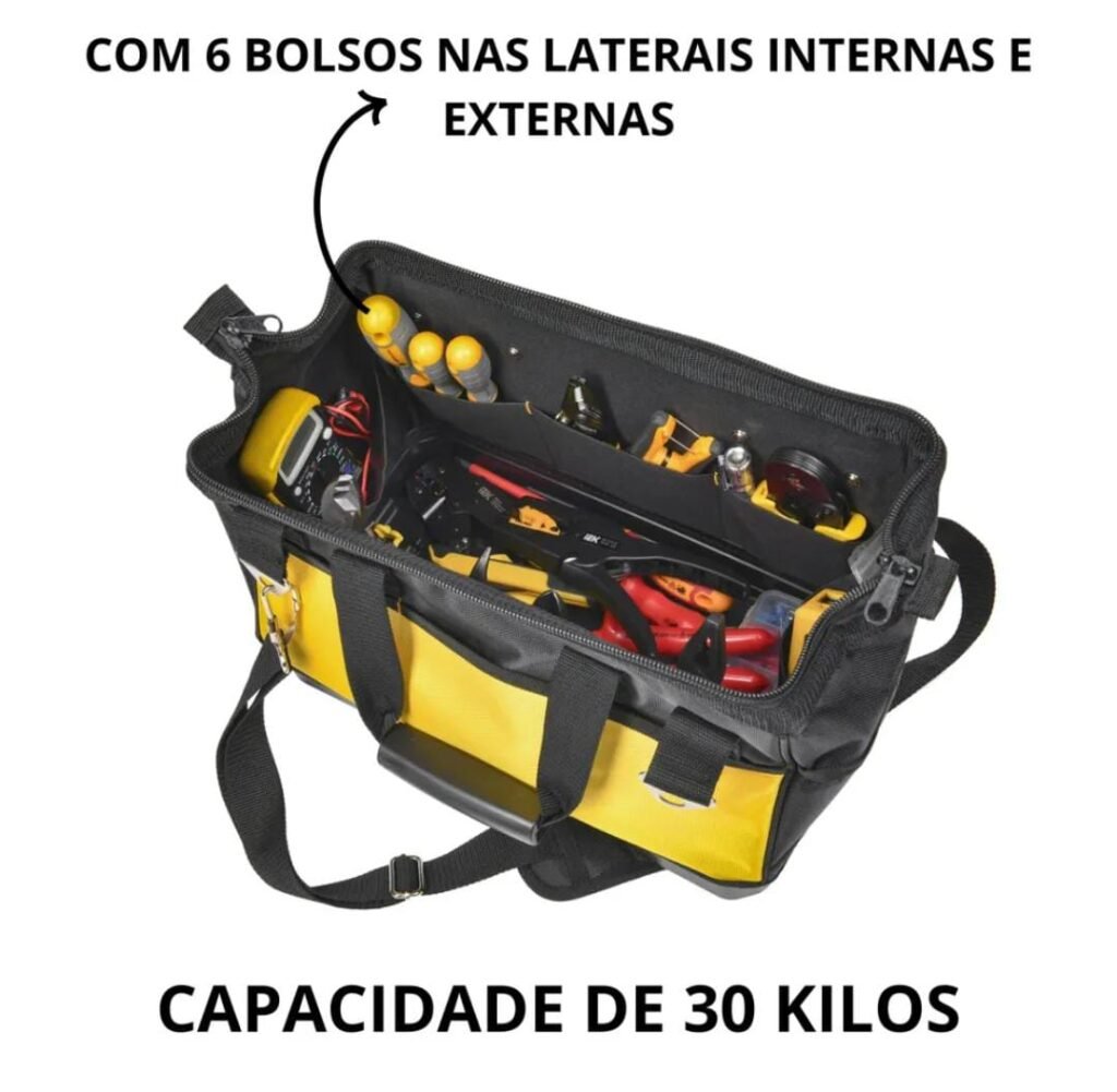 Bolsa de Ferramentas Grande e Reforçada Ideal Para Eletricista Fabricado em Poliéster Capacidade 30 Kilos com 6 Bolsos Internos e 6 externos 3 cores disponíveis