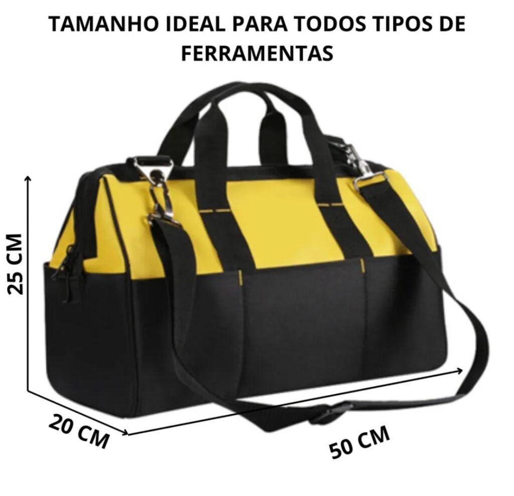 A Bolsa Ferramentas Grande reforçada Manutenção Eletricista com Alça Amarela da marca Bigg Dogg é a escolha ideal para profissionais da eletricidade e manutenções em geral. Com design robusto e medidas de 50 cm de comprimento, 20 cm de largura e 25cm de altura, esta bolsa é projetada pra suportar até 30 kg de carga,garantindo a segurança e eficiência no transporte de suas ferramentas essenciais.Possui 6 bolsos internos e 6 bolsos externos, permitindo uma organização eficiente dos seus equipamentos. O material em poliéster oferece durabilidade e resistência, sendo ideal para o uso em ambientes de trabalho exigentes. A alça amarela adiciona um toque de visibilidade, facilitando o transporte e manuseio da bolsa.Seja em obras, home offices ou em serviços de manutenção, esta bolsa se adapta às suas necessidades, proporcionando um armazenamento prático e acessível. Invista em qualidade e funcionalidade com a Bolsa Ferramentas Grande Reforçada manutenção Eletricista Com Alça amarela e mantenha suas ferramentas sempre à mão.
