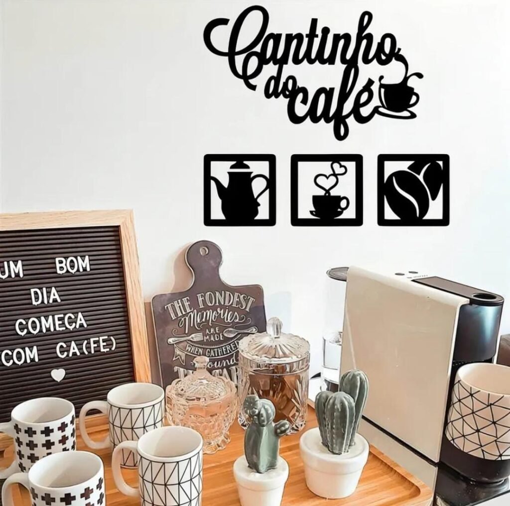Cantinho do Café, Transfome seu Espaço Com Essas Lindas placas decorativas Kit Completo e material de alta Resistência e durabilidade Cor Preto
