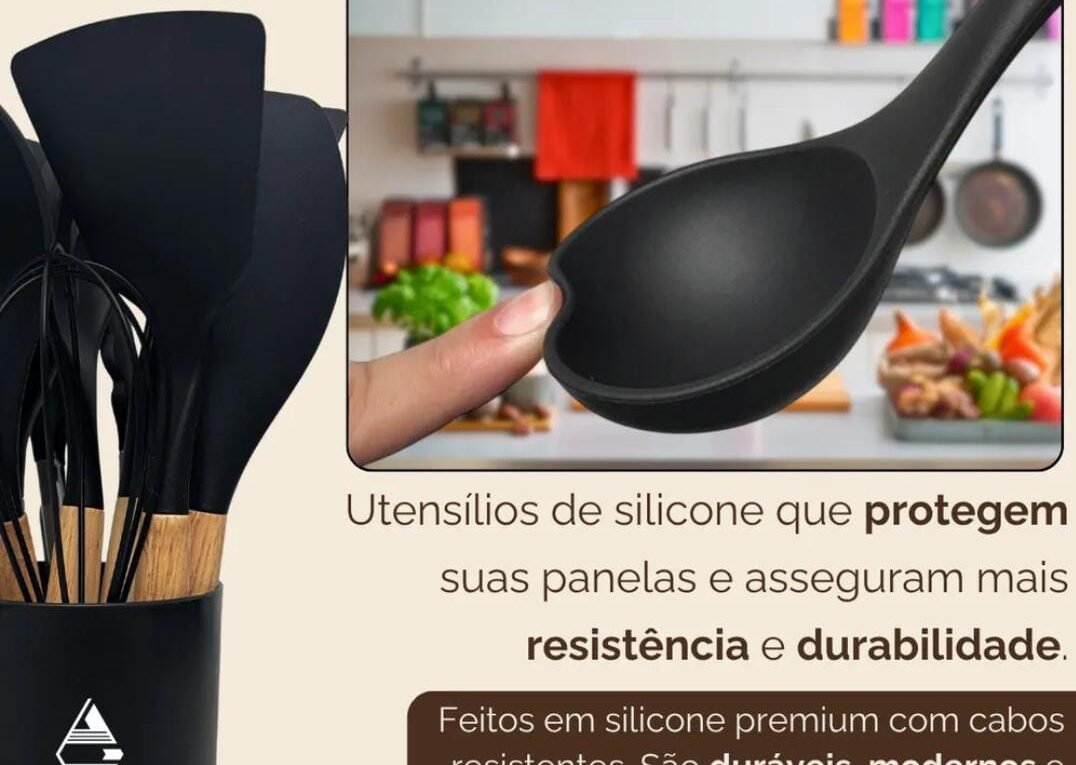 Continue lendoUtensílios de Silicone com Cabo de Madeira Transforme sua rotina na cozinha com estilo, praticidade e durabilidade. Esse conjunto completo
