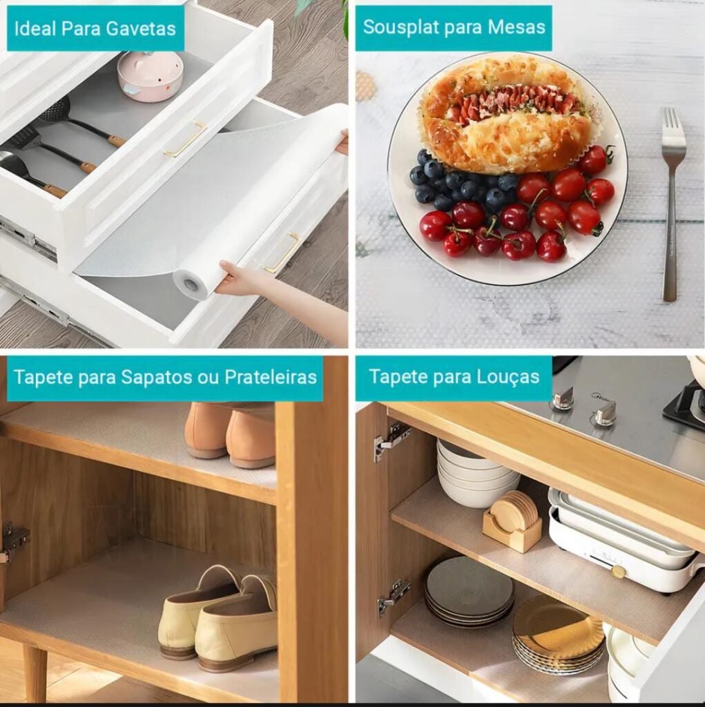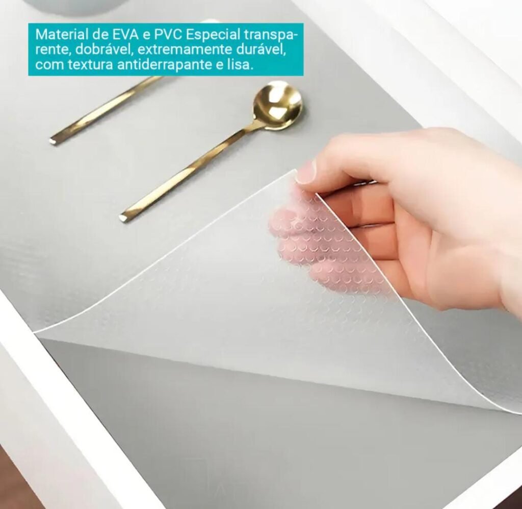 Forro Organizador Antiderrapante Transparente, Ideal para Gavetas, Prateleiras e Bancadas, Feito em EVA e PVC, material Resistente e Fácil de limpar, Cor Transparente