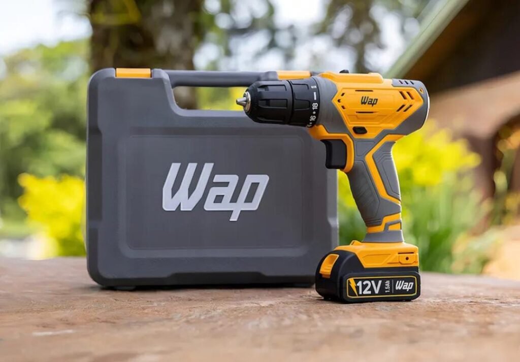 Furadeira e Parafusadeira, com função Reversa A Bateria, Com Maleta, Carregador e Componentes WAP 12 V