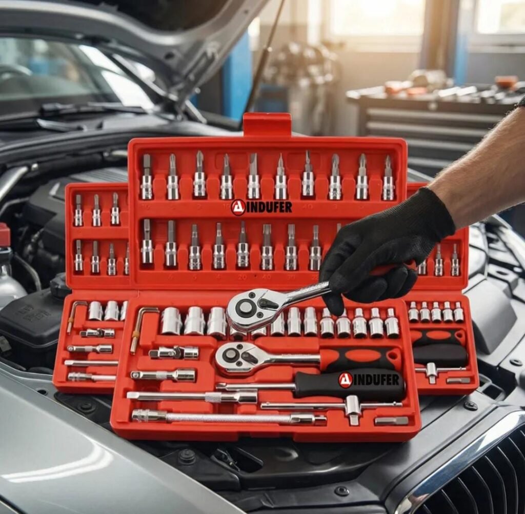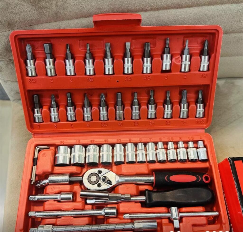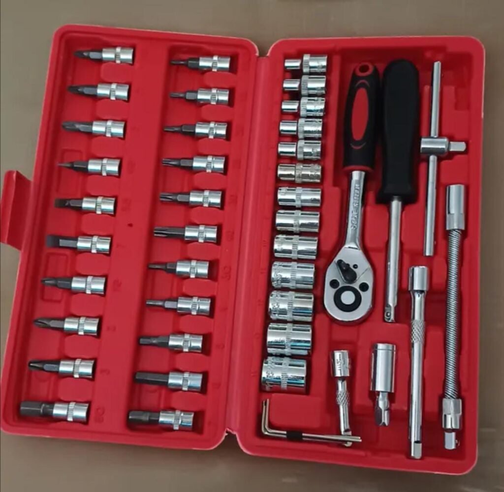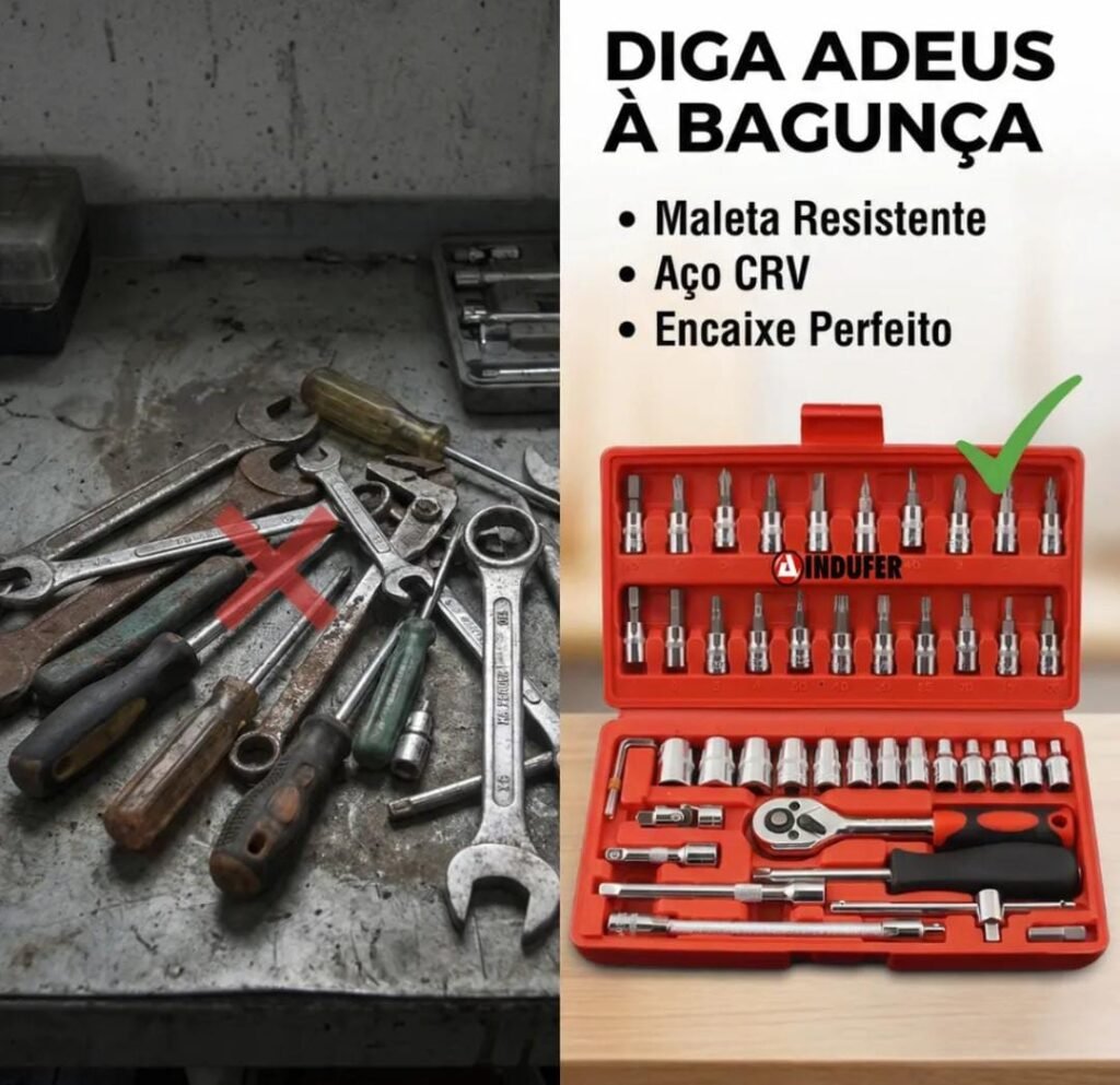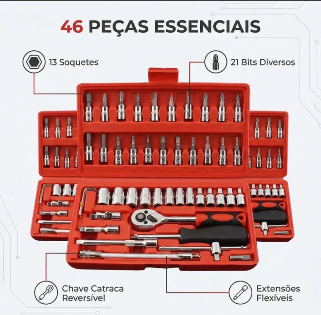 Jogo de Chave Catraca Soquete kit com 46 Peças em Aço CRV Resistente Cromado Combo Profissional Completo Para Manutenção + Chaves Essenciais com Desing Ergonômico – Consertos Simples – Vale o Preço