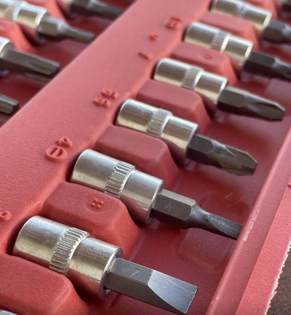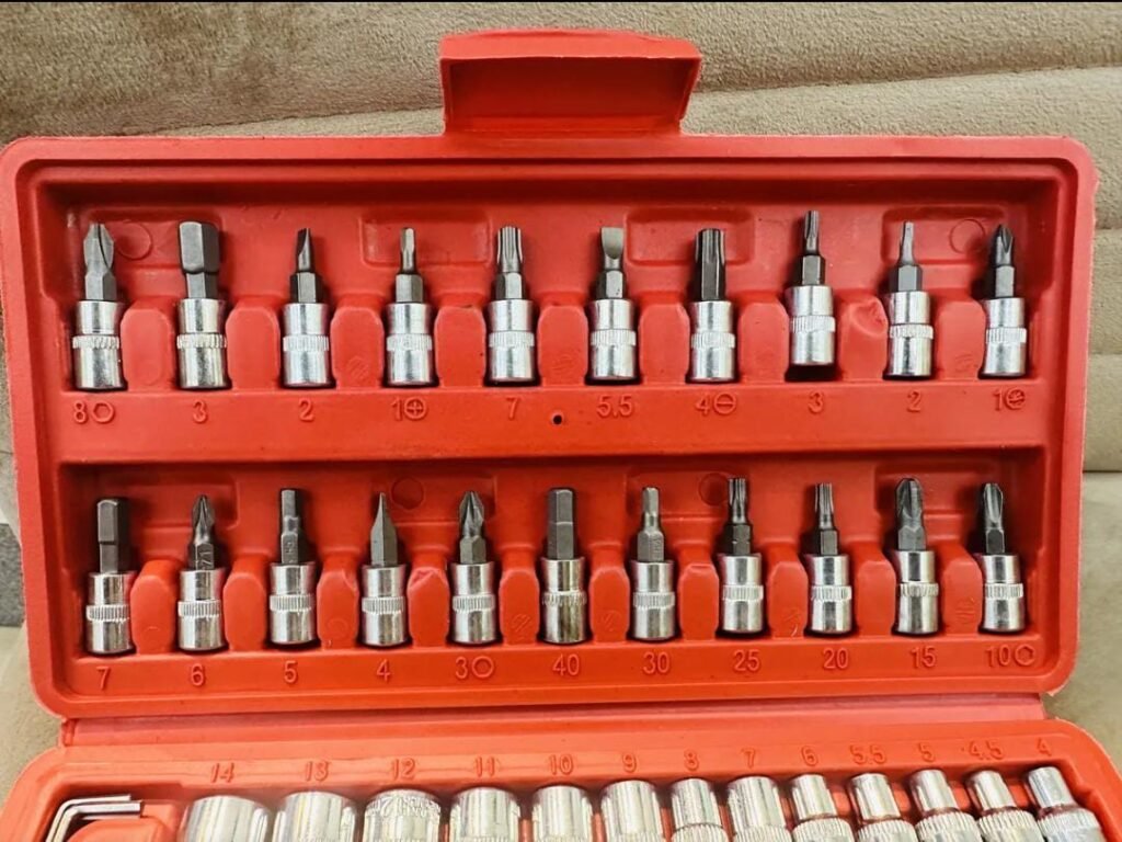 • Acabamento da chave: Cromado. | Kit com 46 peças, incluindo soquetes de bits e chaves hexagonais. | Fabricado em aço cro…
