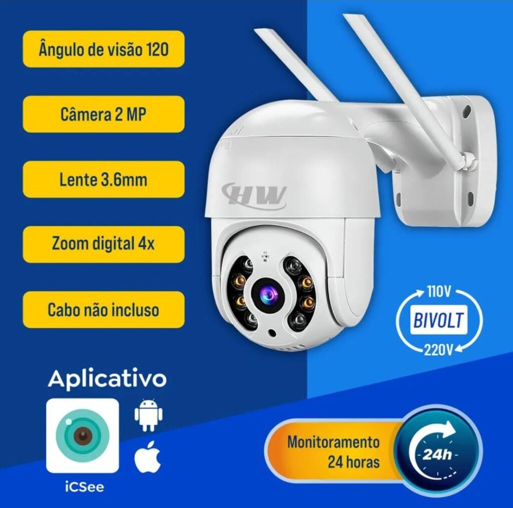 Kit 2 Câmeras de Segurança Prova D’água IP Icsee WI-FI – HW FULL HD Com Imagem Nítida – Bivolt