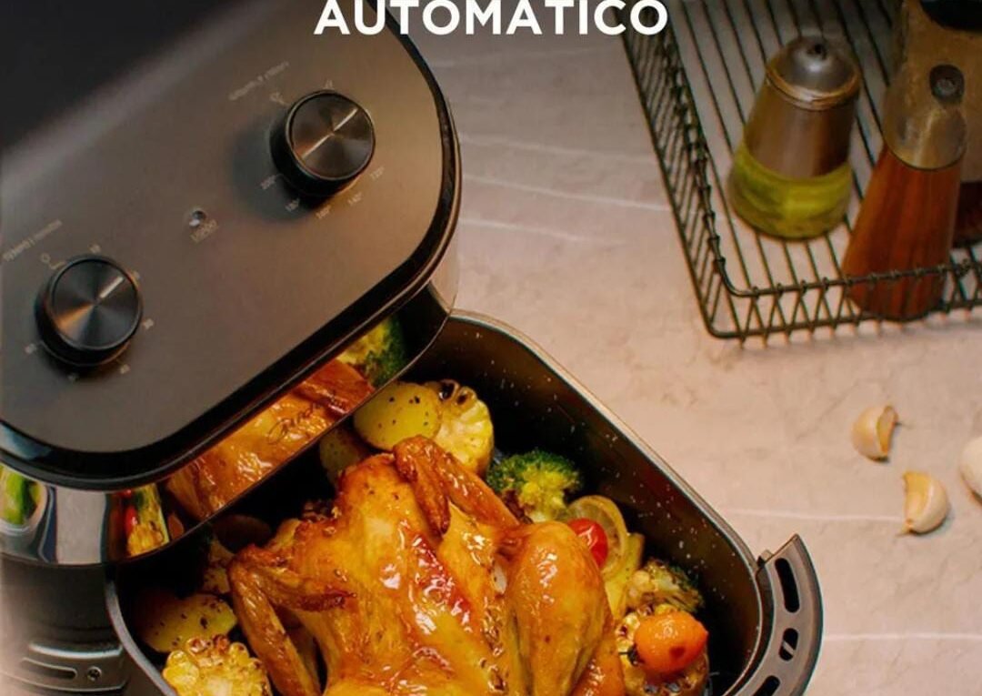 Possui temperatura ajustável entre80°e200℃.Superfície antiaderente..Função incluída: fritar.. Pesa 4.9kg.Material interno em alumínio eacabamento em inox inoxidável.Tecnologia X CycloneDimensões: 28.8cm de