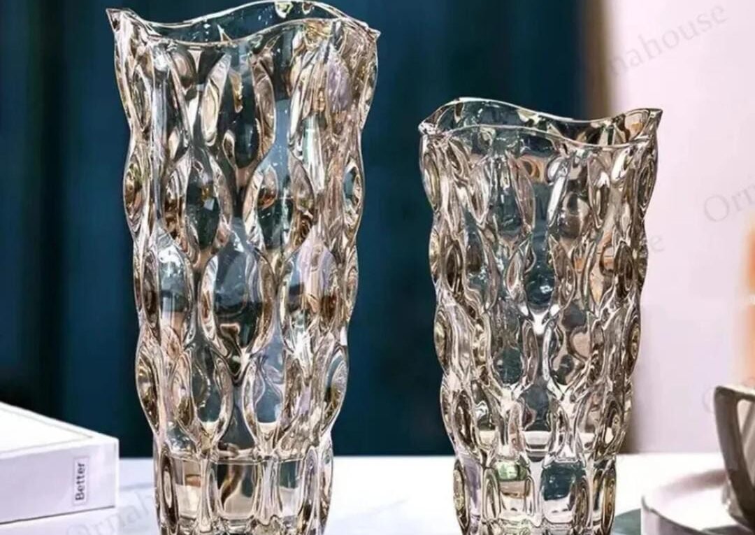 Vaso de Vidro Grosso Primeira Linha Ideal Para decoração com flores, para Sala, Cor Ambar Lapidado
