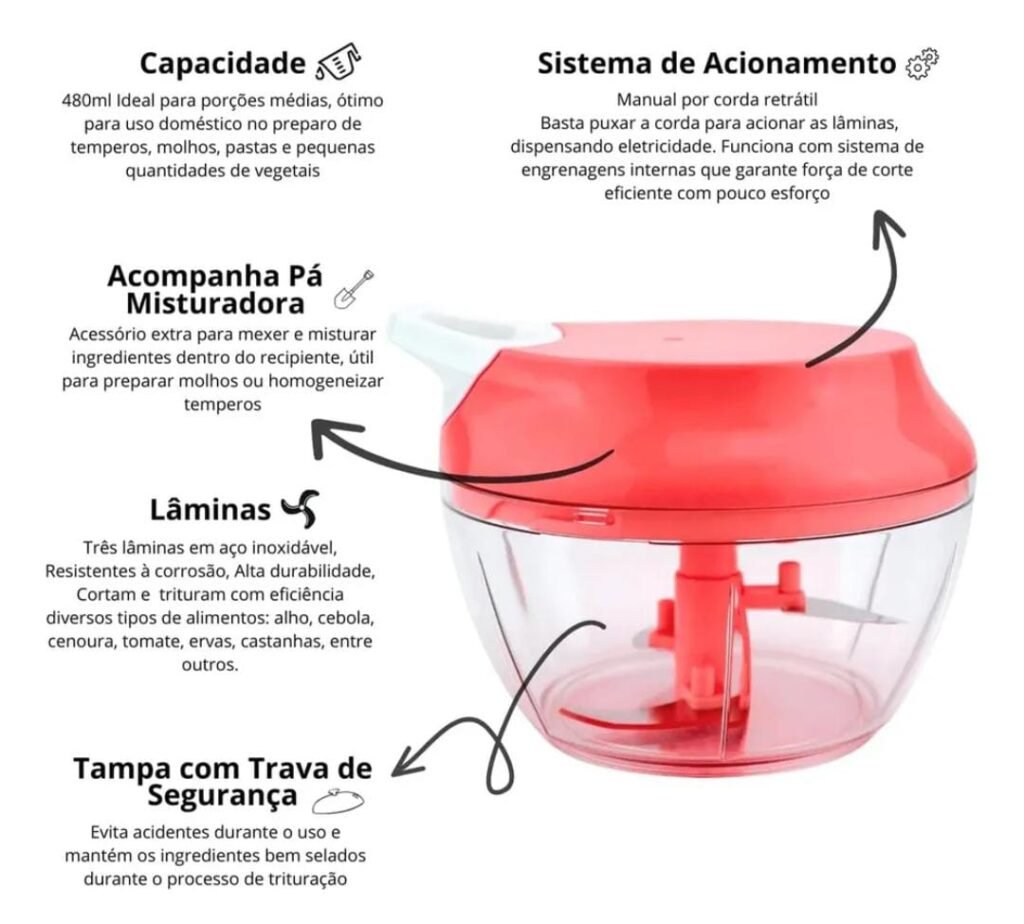 Processador e Triturador Premium Semi automático com 3 lâminas em Aço Inox, muita Facilidade e Rapidez