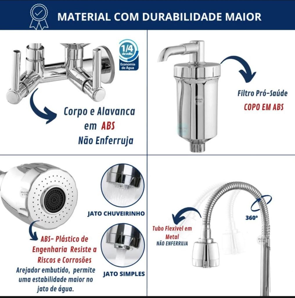 - Acabamento: Brilhante. | Tem fechamento de cerâmica. | O bico é giratorio.