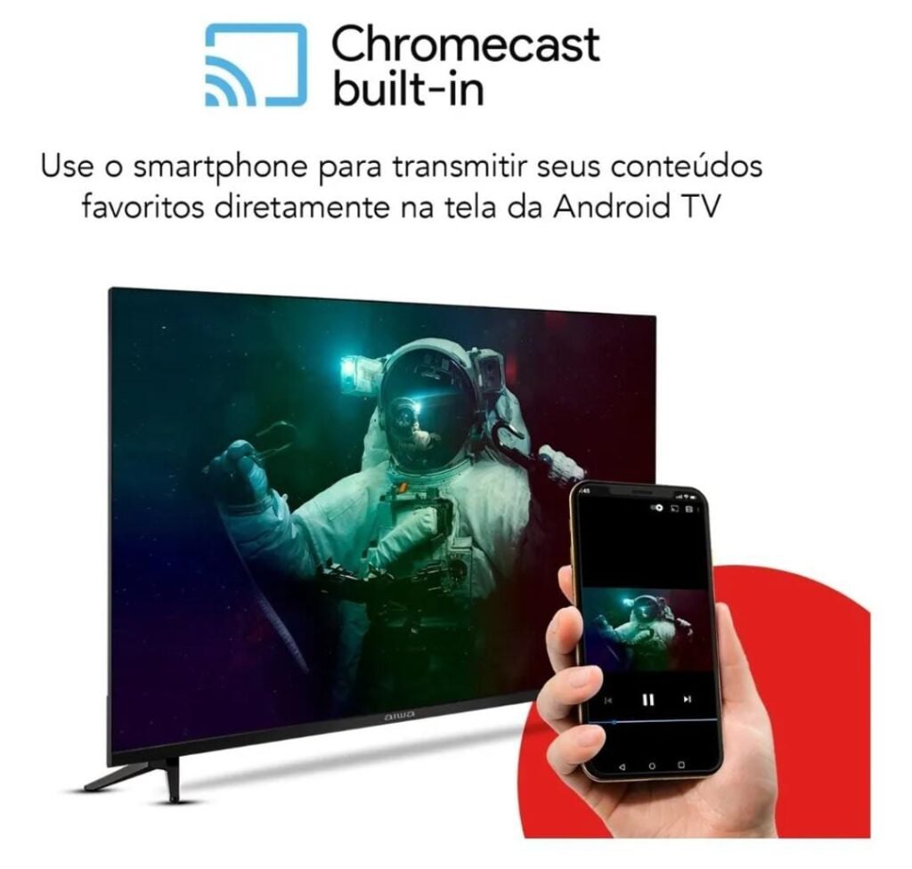 TV 32 POLEGADAS Smart Android HD AIWA borda ultra fina HDR10 Com controle Comando de Voz